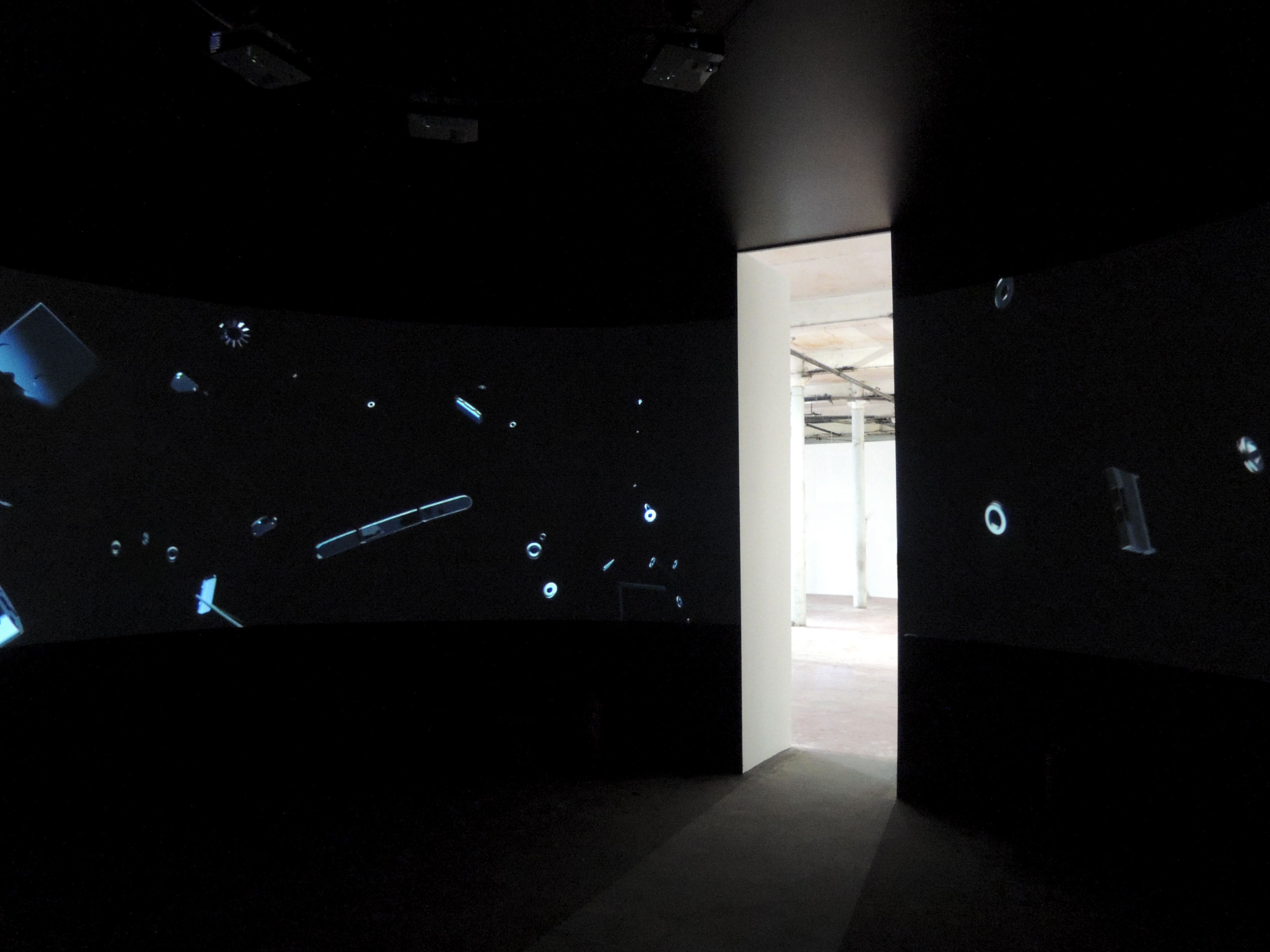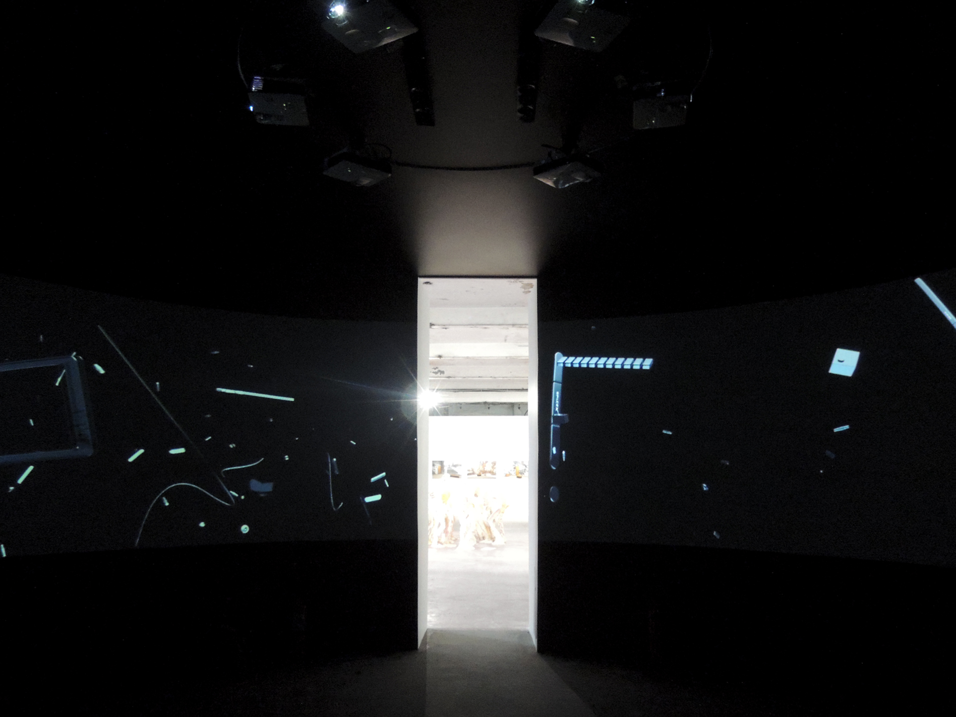 TERATEAR was an immersive video installation featuring a 360-degree digitally animated panorama. It was first exhibited in an enclosed custom-built space in the centre of the Trekhgornaya Manufaktura in Moscow, and screened from six projectors onto a cylindrical structure measuring 19 meters in length. The work also had a surround sound component, further augmenting the enveloping sensory experience.
